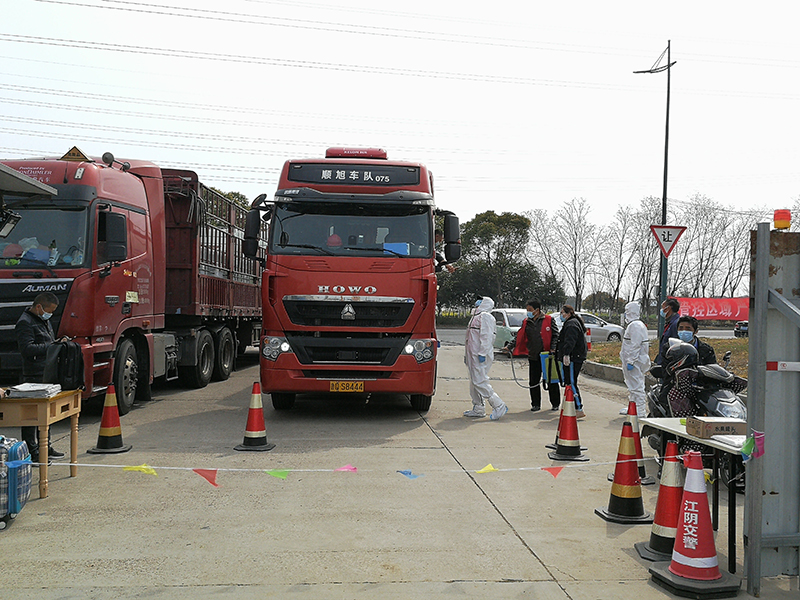 ▲ 物流車輛在管控卡口接受查驗與消殺