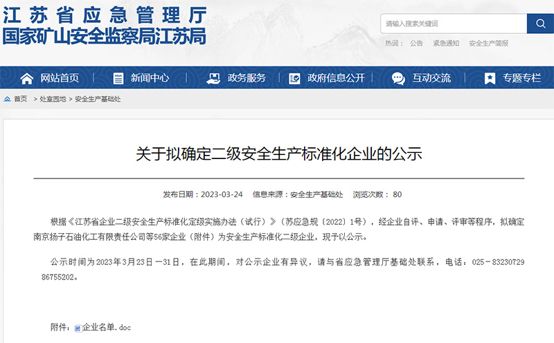 后續(xù),我公司對(duì)評(píng)審組提出的不符合項(xiàng)按照隱患整改“五定”原則制定了整改方案并落實(shí)整改。3月1日,評(píng)審組再次組織專家對(duì)不符合項(xiàng)的整改開展復(fù)查,評(píng)審組確認(rèn)了所有不符合項(xiàng)整改閉環(huán)。2023年3月24日江蘇省應(yīng)急管理廳網(wǎng)上發(fā)布公示。