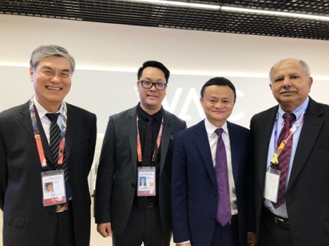 會(huì)議期間,五益教育·妙語藝術(shù)教育集團(tuán)袁曉東先生在VIP貴賓會(huì)議室與阿里巴巴集團(tuán)董事局主席馬云先生,中國工程院常務(wù)副院長潘云鶴先生,圖靈獎(jiǎng)獲得者、中國工程院外籍院士羅杰.瑞迪先生深度溝通交流。