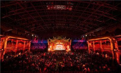 晚會(huì)地點(diǎn)設(shè)在位于建業(yè)戲緣大食堂內(nèi)的百戲樓,這座擁有百年歷史的戲臺(tái),如今以一種全新的形態(tài)再度亮相世人。當(dāng)開場(chǎng)的大型燈光秀映照在戲臺(tái)上,現(xiàn)場(chǎng)觀眾仿佛穿越古今,共同感受戲曲的獨(dú)特魅力。