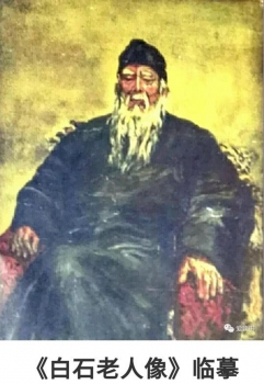 1965年的一天,24歲的墨癡在北京大柵欄書(shū)店看到一本吳作人先生的畫(huà)冊(cè),里邊有書(shū)畫(huà)泰斗齊白石老人的油畫(huà)像,他的心激動(dòng)起來(lái),眼里閃著金光,一定買下這本畫(huà)冊(cè)。從此他下了班回到家吃口東西就開(kāi)始臨摹,一個(gè)多月一畫(huà)就到深夜,最后終于把這張畫(huà)臨摹完了。后來(lái)“文革”來(lái)了,他就把這張畫(huà)藏進(jìn)了家里的頂棚上,到了1974年也就是快十年時(shí),他把這張油畫(huà)從頂棚里拿了下來(lái),可是油畫(huà)卻裂成了一塊一塊的,有十幾塊,于是他就端來(lái)一大盆水,把一塊塊油畫(huà)放進(jìn)大盆里,先是把上面的塵土洗干凈涼干,而后在一張牛皮紙上抹上膠水,再一塊一塊往上粘接出人物形象來(lái),其中相接處要十分小心,部位和紋路必須對(duì)準(zhǔn),否則就會(huì)影響人物形象,要盡可能恢復(fù)到原作的樣子,就這樣墨癡花了非常大氣力才把這張油畫(huà)拼接完成。1998年他在北京大觀園辦個(gè)人畫(huà)展時(shí),這張畫(huà)就放在展廳中央,兩邊還有這樣的題字:“世上若無(wú)齊白石,沒(méi)有今日我墨癡?!蹦翘?,齊白石的孫子齊秉聲見(jiàn)到這幅畫(huà)時(shí),恭敬地給爺爺鞠起了躬。