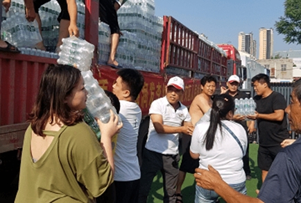 天災(zāi)無情,人有情。一直熱心公益事業(yè)的極地鷹電商平臺(tái)董事長王軍嶺在自救的同時(shí),積極組織在鄭州的消費(fèi)幫扶生活館給停水停電的社區(qū)免費(fèi)送饅頭等生活物資,看到新鄉(xiāng)地區(qū)災(zāi)情同樣嚴(yán)重,立即聯(lián)系禹州禹藥本草的董事長李洪濤并調(diào)集1臺(tái)大卡車于7月25日加急生產(chǎn)的2600件礦泉水和60床蠶絲被先后送達(dá)新鄉(xiāng)災(zāi)區(qū)安置點(diǎn)現(xiàn)場,代表極地鷹和禹藥本草向?yàn)?zāi)區(qū)群眾送上自己的一份愛心。