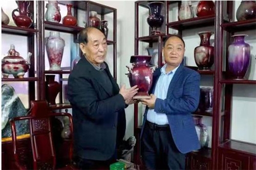 圖片說(shuō)明:左為鈞源堂鈞窯掌門人裴國(guó)乾大師,右為中國(guó)鈞瓷文化研究會(huì)常務(wù)理事,鈞瓷收藏品鑒大師,鈞緣堂鈞窯藝術(shù)總監(jiān)劉建軍,正在探討鈞瓷