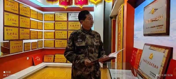 在榮譽(yù)室內(nèi),田延通說(shuō):“這一面面錦旗、一塊塊獎(jiǎng)牌都汗水換來(lái)的,大家用行動(dòng)展現(xiàn)出了我們民兵的風(fēng)采?!?
