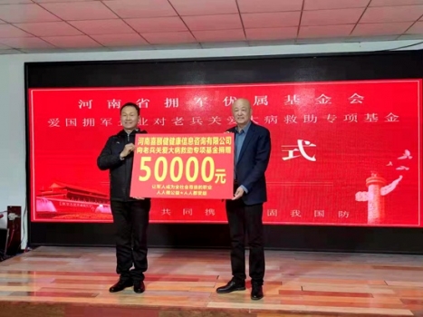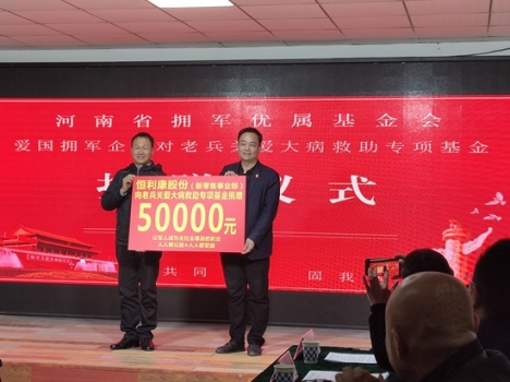 在捐贈儀式上,王海洲副理事長指出,為全面貫徹落實習近平總書記“讓軍人成為全社會尊崇的職業(yè)”的重要指示精神,大力弘揚我省“擁軍優(yōu)屬、擁政愛民”優(yōu)良傳統(tǒng),凝聚愛心力量,傳播慈善理念,在河南省擁軍優(yōu)屬基金會成立老兵關愛大病救助專項基金,是全面開展五兵關愛幫扶工作的具體舉措,感謝廣大愛國擁軍企業(yè)及愛心人士對擁軍優(yōu)屬的支持,歡迎更多的企業(yè)和個人加入。基金會將依法募集、公開信息、嚴格監(jiān)管、及時撥付。