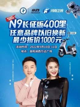 2022年9月10日-11日,河南衛(wèi)視著名主持人苗婷攜全明星團(tuán)隊(duì)聯(lián)合小刀電動(dòng)車共同打造的“航天逐夢(mèng) ? 騎跡中國”小刀長征版全國巡展活動(dòng),將來到古都洛陽,屆時(shí)活動(dòng)在澗西萬達(dá)廣場(chǎng)舉行。