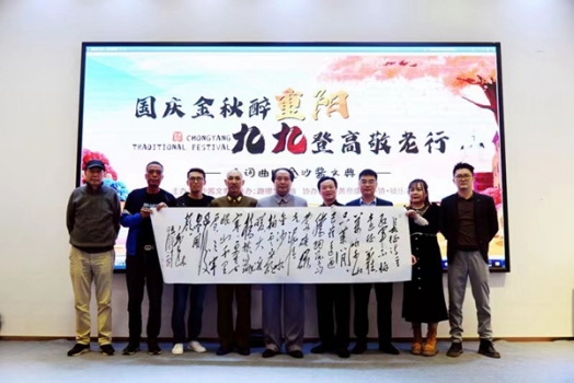 貴州金沙窖酒酒業(yè)有限公司河南銷售部部長張帆、河南醬文典酒業(yè)有限公司總經(jīng)理李玥,國家著名導(dǎo)演胡庚辰、國家一級特型演員、毛主席扮演者韓清華、國家一級特型演員、蔣介石扮演者張宗振、中國著名毛體書法家張安全,趣哪悠康旅負(fù)責(zé)人李楓與全體嘉賓共話重陽,共度國慶。