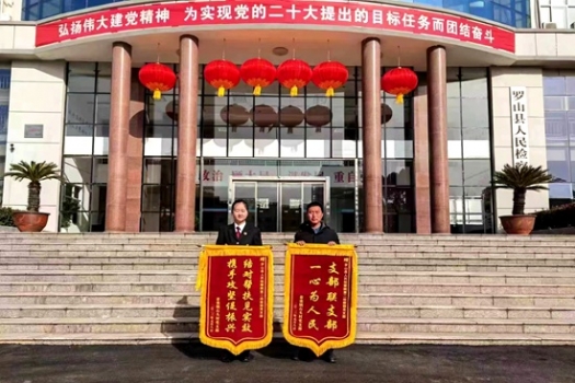 華夏快訊網(wǎng):近日,羅山縣莽張鎮(zhèn)石頭村黨支部書記謝義超將印有“支部聯(lián)支部 一心為人民”“結(jié)對(duì)幫扶見(jiàn)成效 攜手攻堅(jiān)促振興”的兩面錦旗送到縣檢察院第二檢察部黨支部書記劉瓊手中,激動(dòng)的說(shuō)“感謝劉主任對(duì)石頭村的支持和幫助,我代表石頭村干部群眾對(duì)您們表示衷心的感謝”