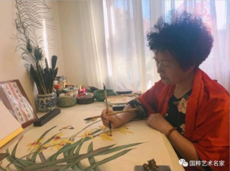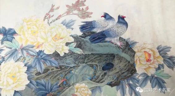 展卷細(xì)品,她筆下的花鳥,取象于平中見奇,淡中見雅,運用條幅與方形的構(gòu)圖,使其韻味無窮。看她的作畫,很強(qiáng)烈的感覺到用線的流暢、柔和、霸氣和俊美,時時透出一股靈氣。在花與鳥之間,點綴著或黃、或青、或深、或淡的枝葉,在靜與動之間,呈現(xiàn)出一片平靜祥和的氣氛。她筆下的花鳥可謂是形神兼?zhèn)?,栩栩如生,?gòu)思巧妙。