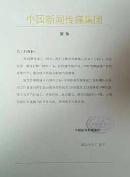 中國東盟傳媒聯(lián)盟訊(藍乙人、蒙仕榮、藍添譯) 最近,中華環(huán)球衛(wèi)視網(wǎng)絡傳媒集團記者從香港總部獲悉,中國新聞傳媒集團朱鵬源總編輯受應邀,特意為共工日報社成立8周年發(fā)來賀詞。