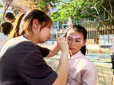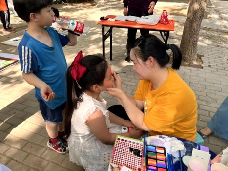 活動現(xiàn)場的另一旁,是活靈活現(xiàn)的臉部彩繪,同語美術(shù)的志愿老師,用水溶性植物顏料根據(jù)小朋友的喜愛選擇合適的圖案在面部呈現(xiàn)出來,讓孩子們體驗(yàn)繪畫藝術(shù)的不同形式,給孩子的心中種下藝術(shù)的種子,留下一個(gè)童年美好的回憶。