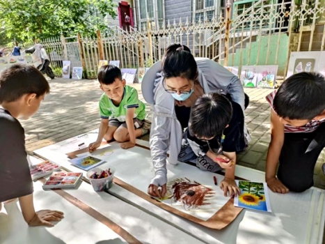 6月1日下午,長江路社區(qū)開展兒童長卷繪童年,臉部彩繪活動。
