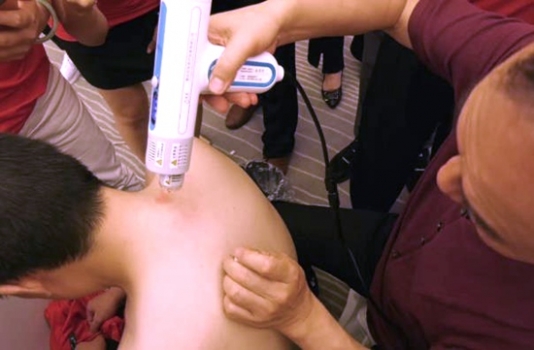 現(xiàn)場(chǎng),趙百孝教授分別用手工火針和電動(dòng)火針進(jìn)行對(duì)比。當(dāng)酒精點(diǎn)燃將火針燒紅時(shí),不由得為“患者”捏了一把汗,當(dāng)看到趙百孝教授三針一氣呵成,不由得松了一口氣,當(dāng)為妙手。與傳統(tǒng)火針相比,趙百孝教授操作電動(dòng)火針速度更快,“患者”3厘米大小皮膚連施十八針,不由得驚呆來讓在場(chǎng)人員。之后,獲得“患者”親身體驗(yàn)電動(dòng)火針的體驗(yàn)者一致好評(píng)。