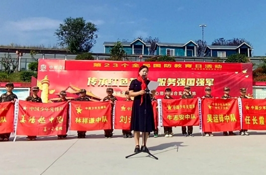 (開封市少工委副主任、開封市三師附小德育副校長高紅艷代表全省12支“英雄中隊”宣讀深入開展全民國防教育倡議書)