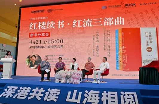 書香深圳,滿城皆可觸手經(jīng)典,悅享旋律溫潤心田。作為科技之城,其中華傳統(tǒng)文化同樣依然根植于這座改革開放四十年的青春之都。值此第29屆4?23世界讀書日到來之際,深圳市作家楊勤歷時(shí)三年完成,并于2024年4月21日攜新書《紅樓續(xù)書?紅流三部曲》的《榴花紀(jì)》《桃葉渡》和《凌波行》,在深圳市中心書城南區(qū)大臺(tái)階分享由深圳出版集團(tuán)、深圳書城中心城和天津社會(huì)科學(xué)院出版社聯(lián)合舉辦的活動(dòng)。