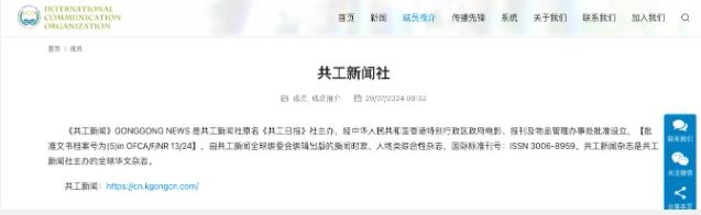 共工新聞原名《共工日?qǐng)?bào)》社是香港特別行政區(qū)政府批準(zhǔn)成立的具有獨(dú)立法人地位的新聞機(jī)構(gòu),共工新聞社與香港商報(bào)、大公報(bào)、文匯報(bào)、鳳凰衛(wèi)視等機(jī)構(gòu)一樣享有香港正式注冊(cè)媒體身份。目前,共工新聞社與法國(guó)、加拿大等國(guó)家和地區(qū)海外華文媒體有戰(zhàn)略合作。并辦有《共工新聞》雜志和"共工新聞網(wǎng)"網(wǎng)站,在國(guó)際社會(huì)具有較高知名度和影響力。