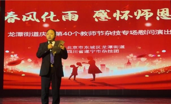為慶祝第四十個(gè)教師節(jié)的到來,向龍?zhí)兜貐^(qū)教育工作者表示感謝,9月7日下午,“春風(fēng)化雨 感懷師恩”北京市東城區(qū)龍?zhí)督值缿c祝第40個(gè)教師節(jié)專場(chǎng)慰問演出在紅劇場(chǎng)隆重上演。此次演出活動(dòng)由遂寧市雜技團(tuán)傾情奉獻(xiàn),現(xiàn)場(chǎng)600余名觀眾參加。