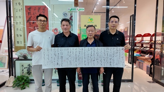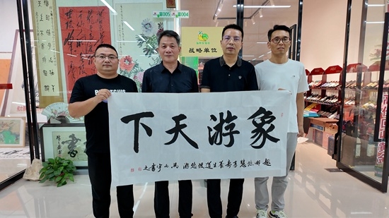 去哪游康旅河南總經(jīng)理李楓和河南歡送商貿(mào)有限公司總經(jīng)理劉春廣共同揭牌。河南省中天基金會書畫藝術(shù)委員會紅云書畫協(xié)會會長馬丙宇,書法家劉培然現(xiàn)場揮毫潑墨,為到場嘉賓贈送書法作品。