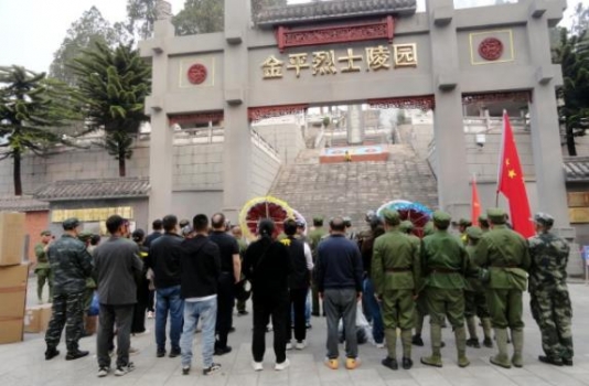 3月29日上午8時許,開始前往金平烈士陵園祭奠英烈。金平縣地處云南省紅河州南部,與越南接壤,邊境線長502公里(陸界361公里,水界141公里),居與越南接壤邊境線全國第一位。金平烈士陵園分上園與下園,用一條“麻布石”石條鋪砌的137級石臺階縱貫其間,將上下兩園連為一體,葬有在中越邊境自衛(wèi)還擊戰(zhàn)中光榮犧牲的陶少文(董存瑞式的戰(zhàn)斗英雄)等763位烈士,為金平縣第一批縣級文物保護(hù)單位。