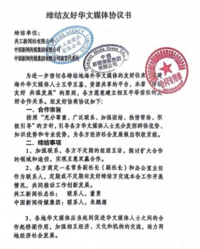 締結(jié)友好華文媒體協(xié)議書文件。 文件截圖