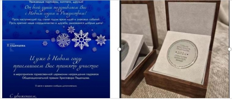 據(jù)“克里斯托弗·萊登佐夫國家獎”主任柳德米拉·林德布拉德說,每年都會設(shè)計出獨特的獎?wù)拢?今年的頒獎?wù)滦螤畈粚こ#⒈A袅丝死锼雇懈ァぶx蒙諾維奇的肖像,應(yīng)眾多要求,還設(shè)計并制作了胸前徽章,您將在其中讀到萊登斯學(xué)會的座右銘“科學(xué),勞動,愛,滿足感”。國h的縮寫也被設(shè)計在獎?wù)抡娴膱D案中。