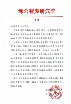 河南省旅游文化研究會(huì)第三屆第一次全體會(huì)員大會(huì)暨換屆大會(huì)在即,豫公智庫(kù)研究院發(fā)來(lái)賀信,賀信全文如下: