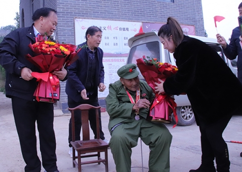 向102歲抗美援朝老英雄金國(guó)太送上敬意