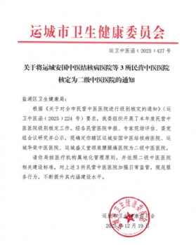 12月19日,運(yùn)城醫(yī)療領(lǐng)域傳來(lái)振奮人心的消息,運(yùn)城安國(guó)醫(yī)院被正式確定為二級(jí)中醫(yī)醫(yī)院,一同獲此殊榮的還有運(yùn)城盛義堂頸肩腰腿痛醫(yī)院等兩家民營(yíng)醫(yī)院,這一成果標(biāo)志著運(yùn)城安國(guó)醫(yī)院發(fā)展踏上新征程,也為鹽湖區(qū)中醫(yī)藥事業(yè)發(fā)展注入新動(dòng)力。